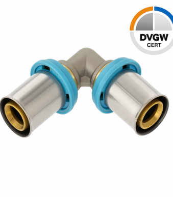 ERFU 90° CRIMP ELBOW MULTI-LAYER FITTING 20 MM X 20 MM EQUAL ELBOW – DVGW CERTIFIED, MULTI-PROFILE U/H/TH