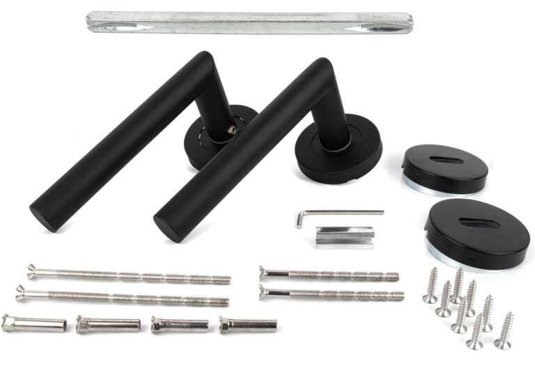 Angular door handle with rosette for interior doors |Powerful retaining spring, support cams |Black
