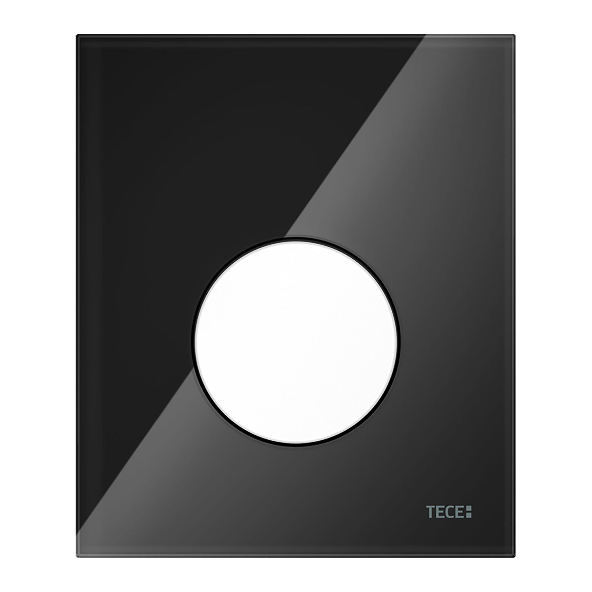 TECELOOP URINOIRBEDIENINGSPLAAT VAN GLAS INCL. CARTOUCHE – GLAS GLANZEND ZWART – TOETS GLANZEND WIT