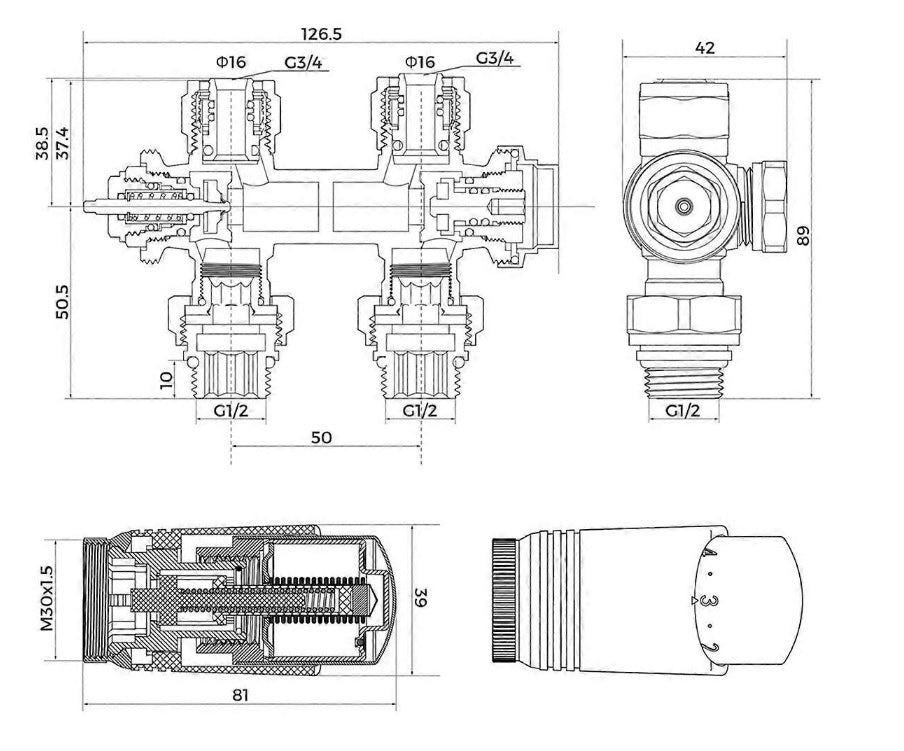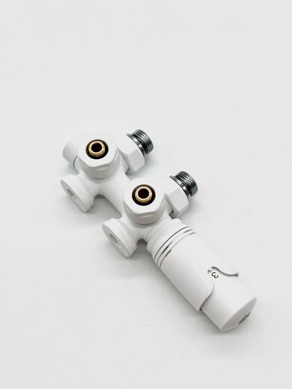 VANNE DE RADIATEUR ERFU – DESIGN – THERMOSTATIQUE – RACCORDEMENT MUR ET SOL – 1/2MX16/2 M30 – BLANC MAT