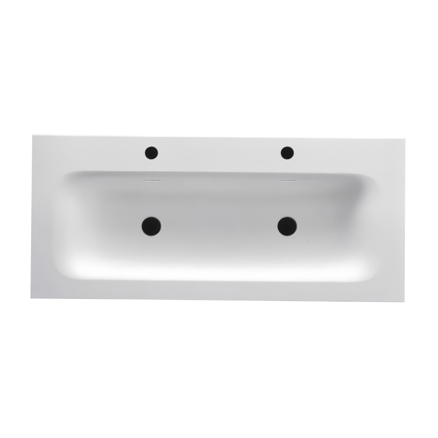 WONDA RONDE SLANKE WASTAFEL – 1 BASIN – MET OVERLOOP – 2 KRAANGATEN – KUNST MARMER – 120X1,6X52,5 CM – MAT WIT