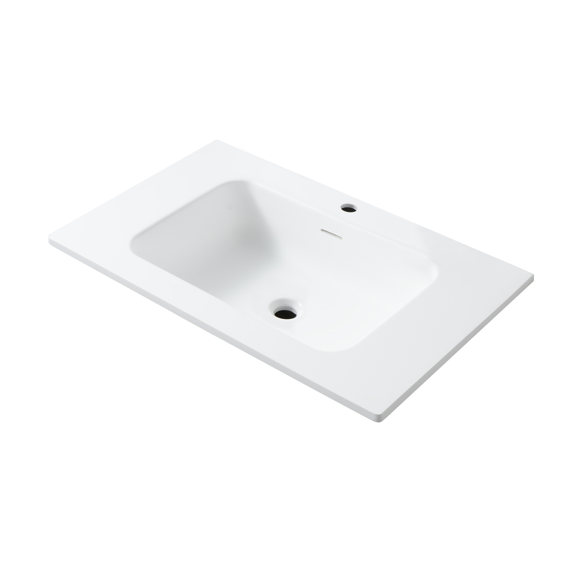 WONDA SQUARE SLIM WASTAFEL – 1 BASIN – MET OVERLOOP – 1 KRAANGAT – KUNSTMATIG MARMER – 80X1,6X52,5 CM – MAT WIT