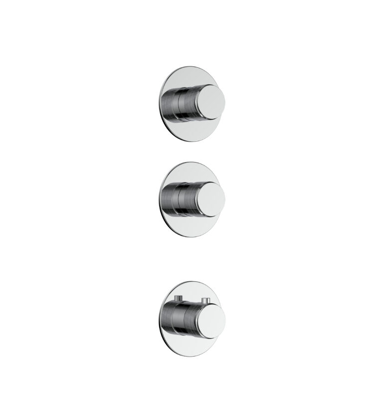 STRIA TRIM SET FOR SHOWER MIXER – 3-WAY WITH 3 STOP VALVES – THERMOSTATISCH – BUILT-IN – ROUND – REFINED RIBBED HANDLES – CHROOM