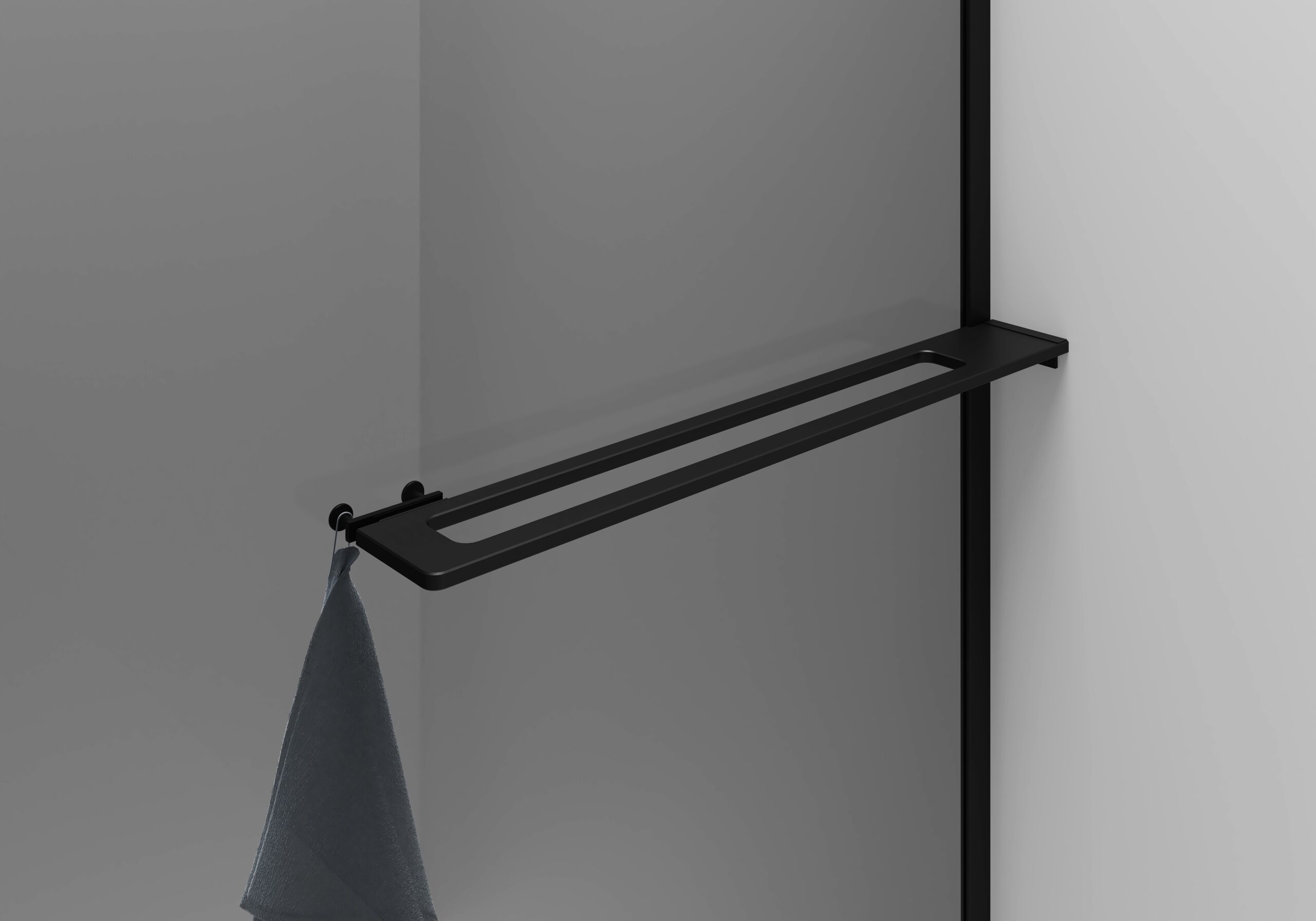A cleverly designed towel rail with integrated shelf and two handy hooks offers extra comfort and convenient storage. You can install it on either the inside or outside of the shower screen – whichever suits you best.