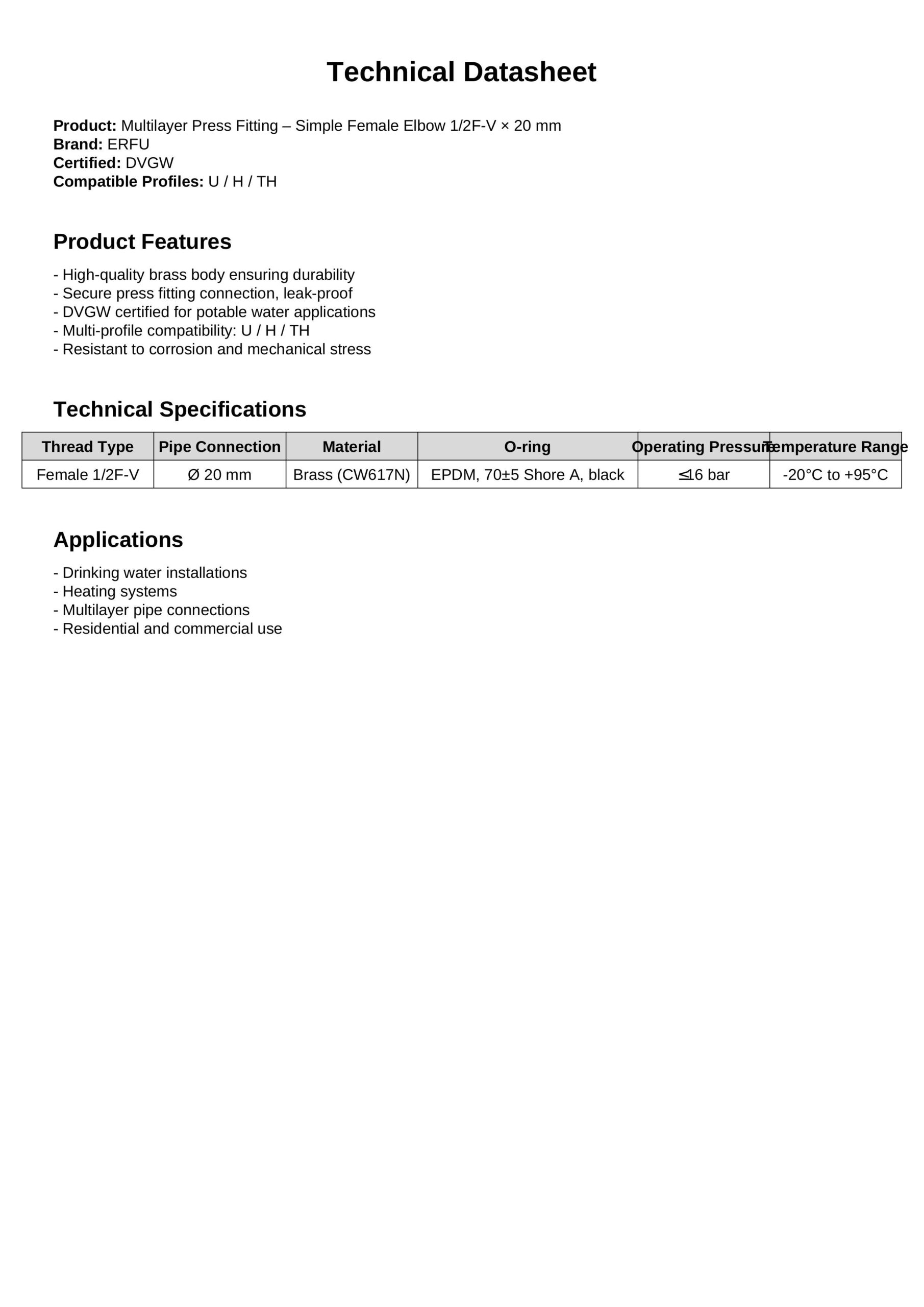 Erfu multilayer crimp fitting 1/2″ binnendraad-V x 20 MM â persfitting DVGW-gecertificeerd, geschikt voor U-, H- en TH-profiel