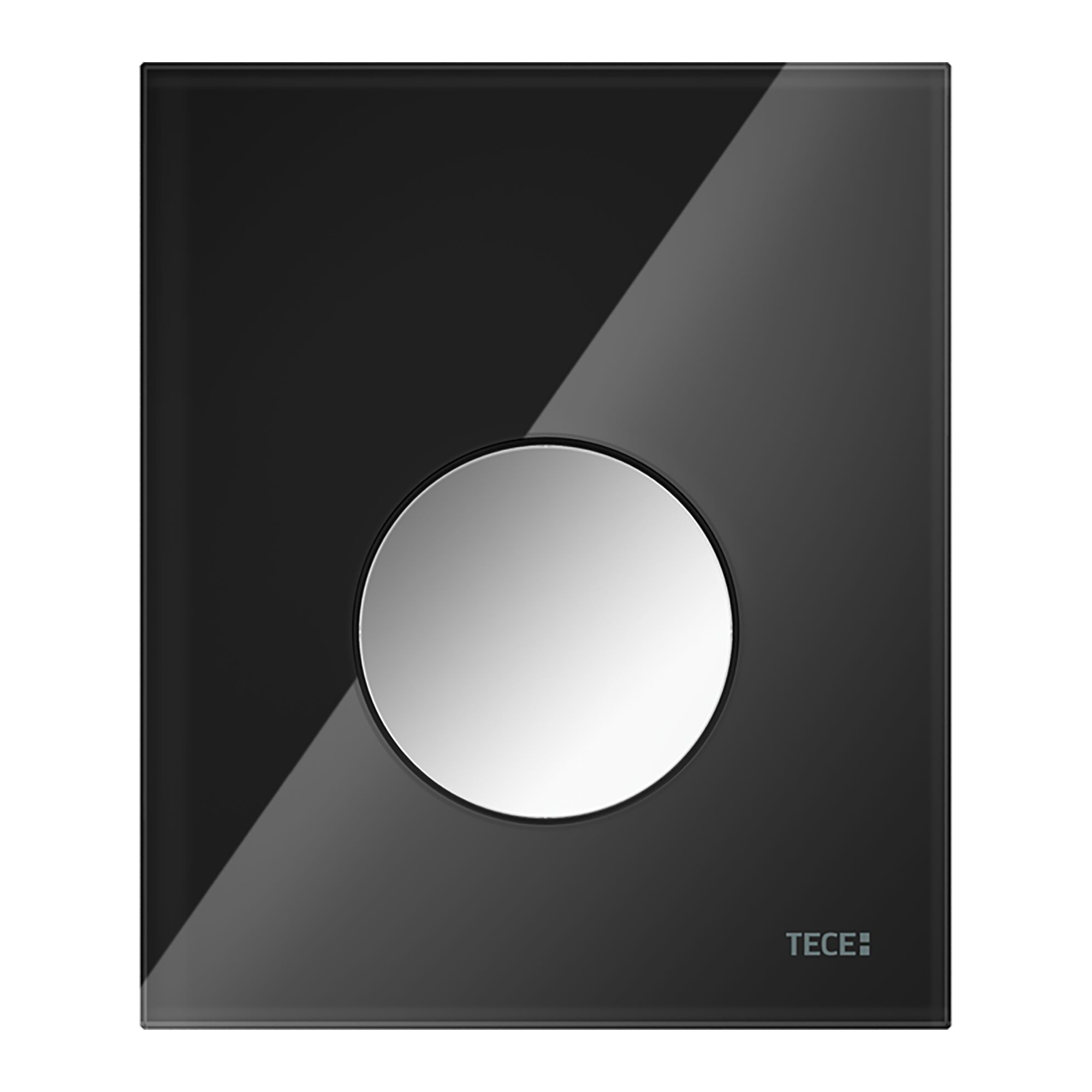 TECELOOP URINOIRBEDIENINGSPLAAT VAN GLAS INCL. CARTOUCHE – GLAS GLANZEND ZWART – TOETS GLANZEND CHROOM