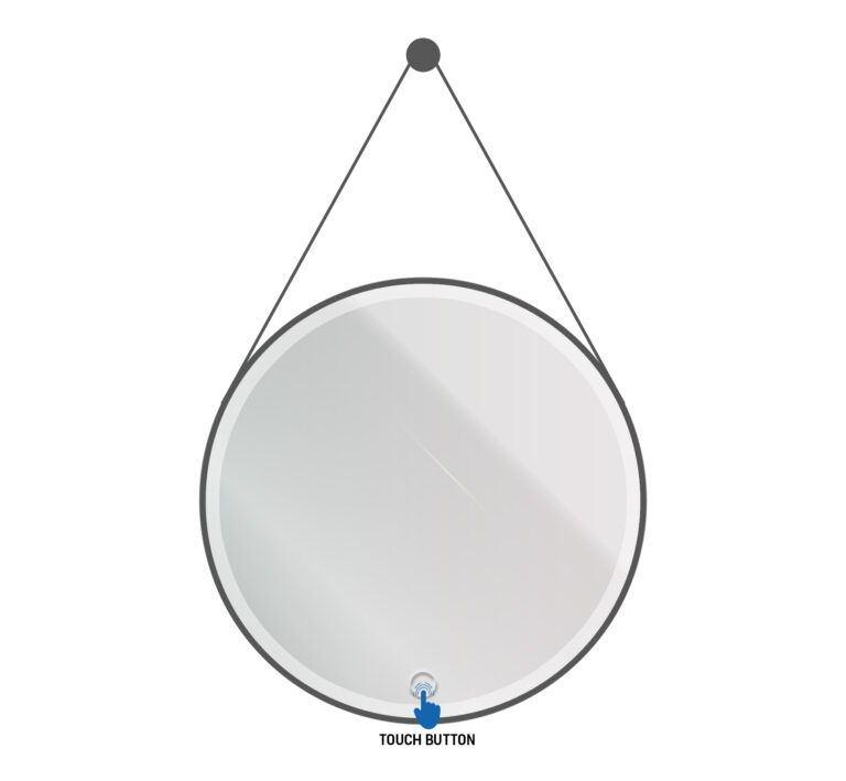 ALONI BELTIA MIRROR – WITH LED LIGHTING – ROUND – WITH FRAME – WITH IMITATION LEATHER STRAP AND HOOK – LED COLOR TEMPERATURE 3500-6500K – 80CM – MATT BLACK