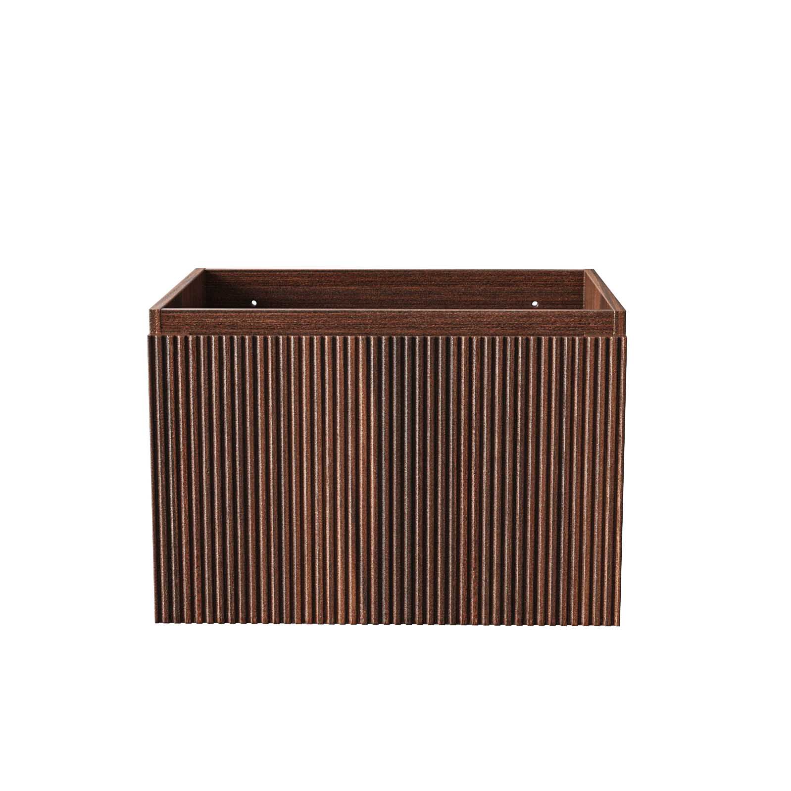 The handleless design, combined with the subtle ribbed texture, makes this Ela washbasin cabinet de 60 cm in wengé not only a practical choice but also a stunning eye-catcher for your bathroom. The soft-close drawer ensures a smooth and silent closure, while the internal wengé finish adds a luxurious touch. Additionally, the siphon cut-out at the back of the drawer makes the cabinet ideal for practical installation around pipes.