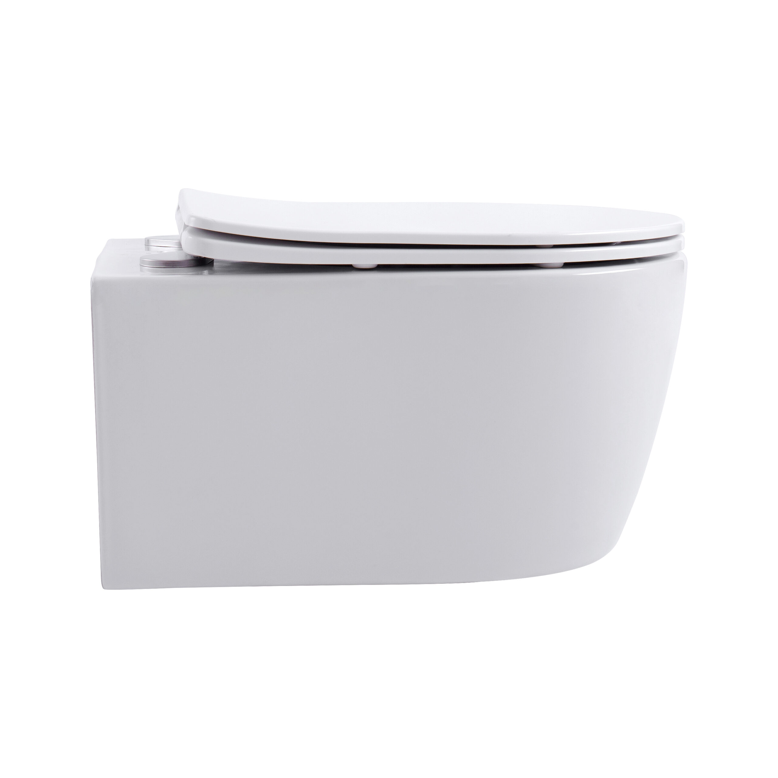 ALONI PRO WALL-HUNG TOILET – RIMLESS – WITH SEAT – DUROPLAST – SOFTCLOSE – QUICK RELEASE – COMPACT 49 CM – 36X25X49 CM – GLOSSY WHITE