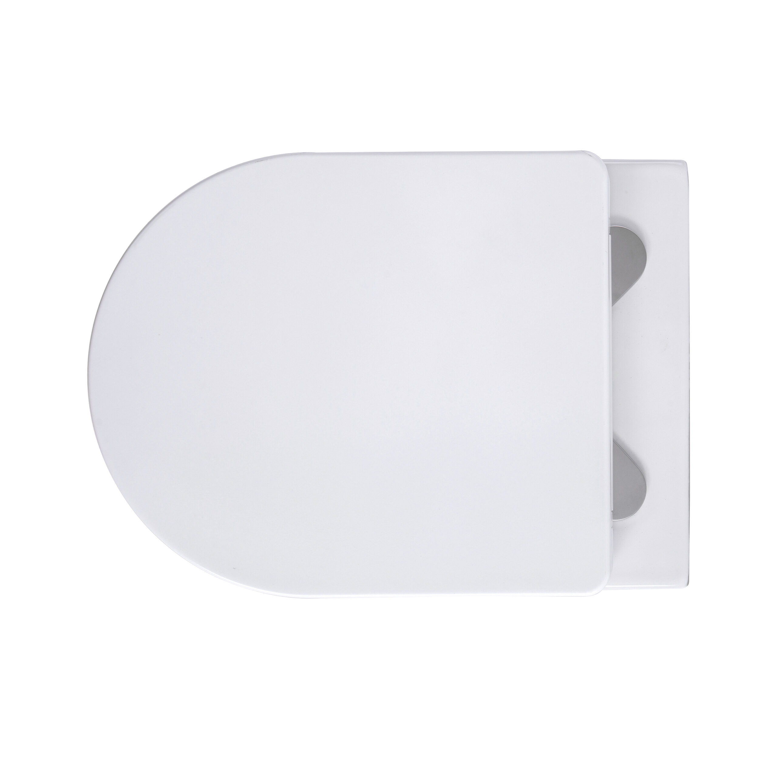 The included duroplast toilet seat with soft close function prevents noisy slamming,