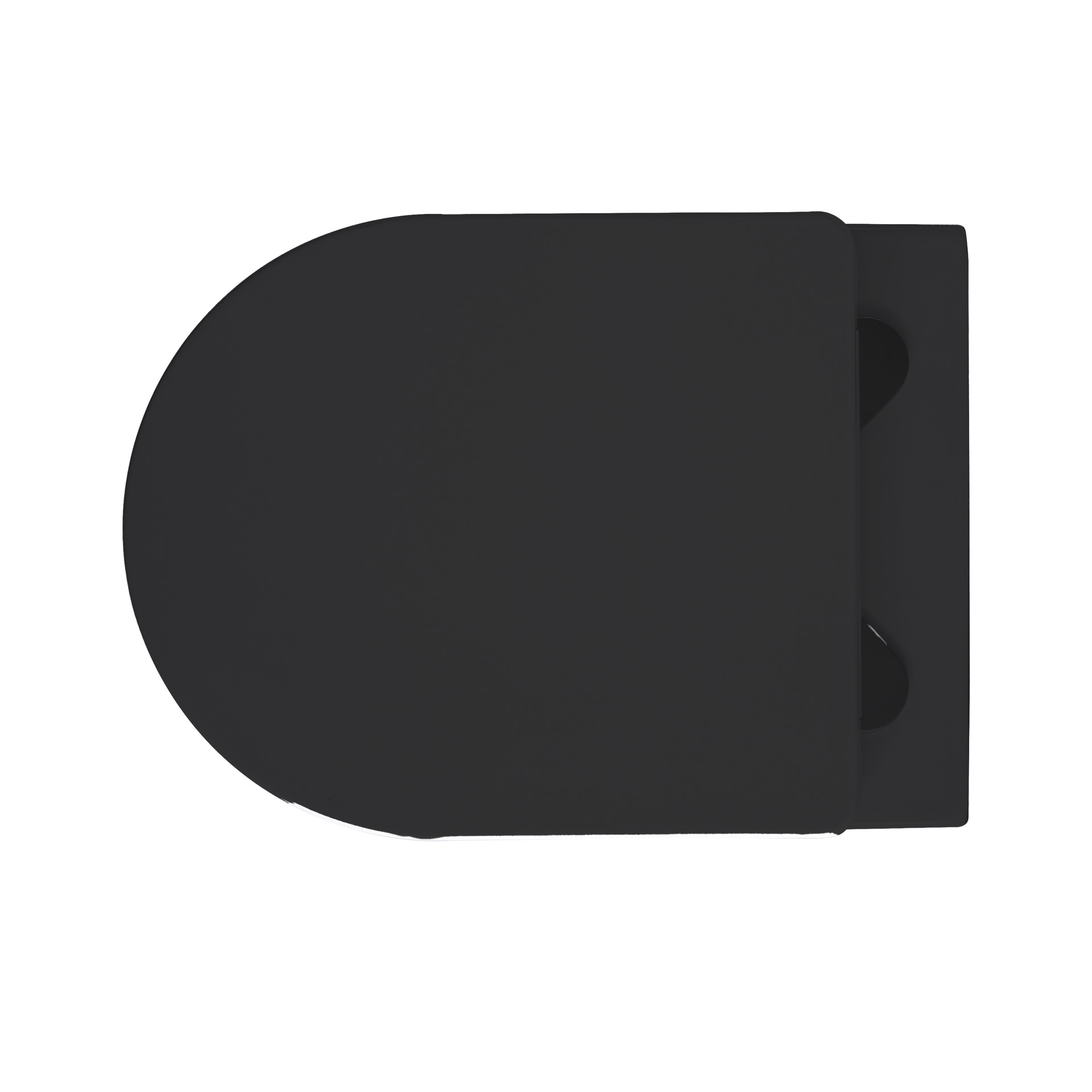 ALONI PRO WALL-HUNG TOILET – RIMLESS – WITH SEAT – DUROPLAST – SOFTCLOSE – QUICK RELEASE – COMPACT 49 CM – 36X25X49 CM – MATT BLACK
