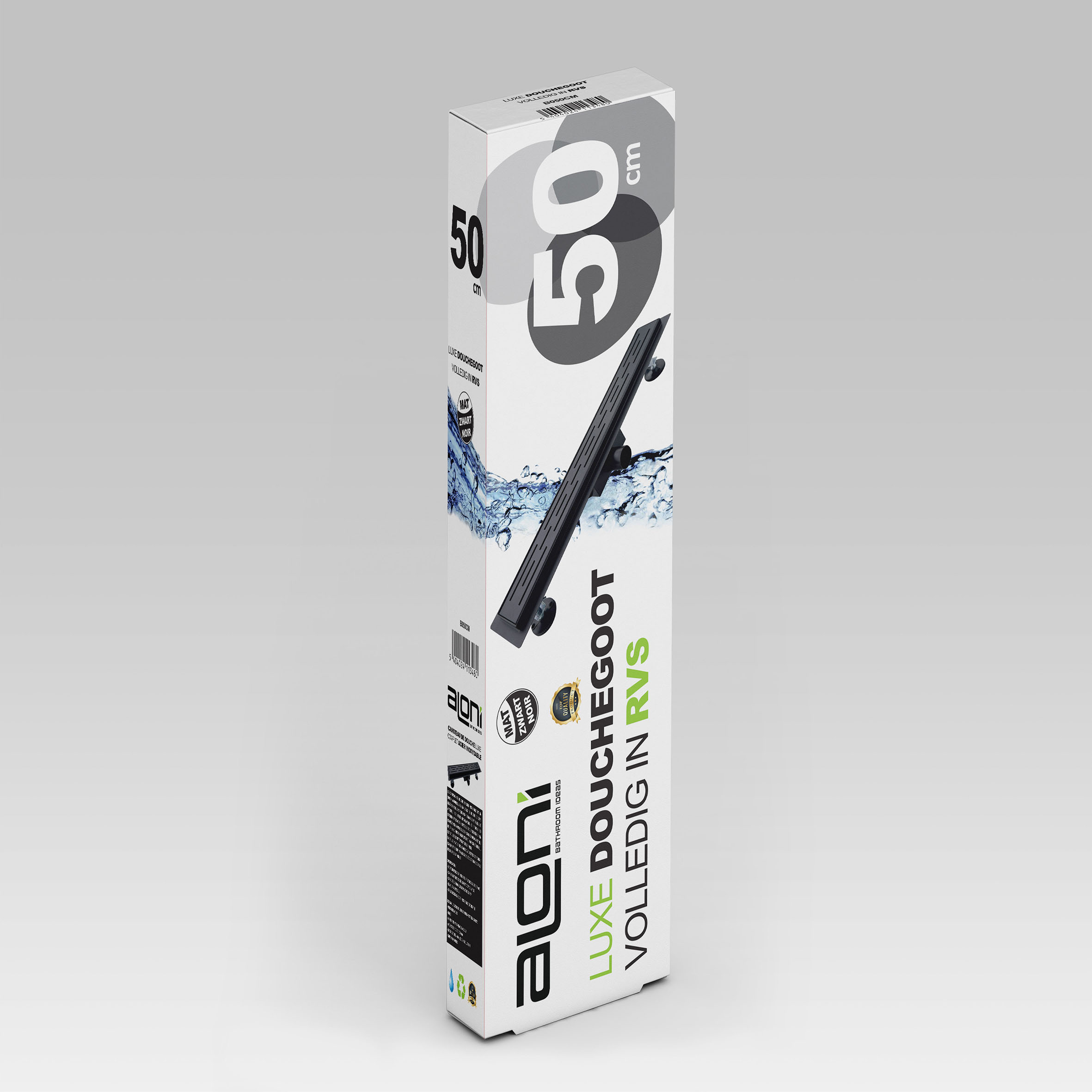 ALONI SHOWER DRAIN – WITH GRATE – COMPLETE – 50CM – MATTE BLACK