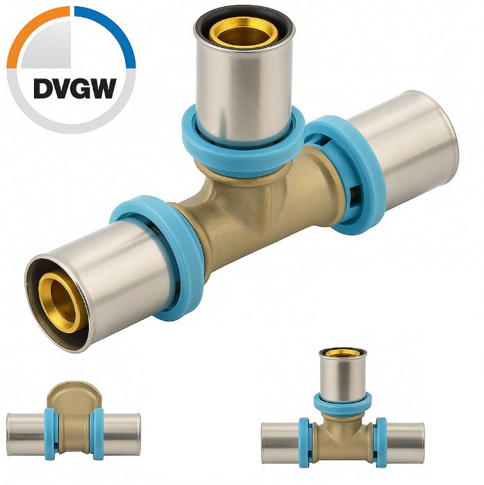 Erfu Multi-layer crimp reduced tee 20 mm x 16 mm x 16 mm â DVGW certified, multi-profile U/H/TH