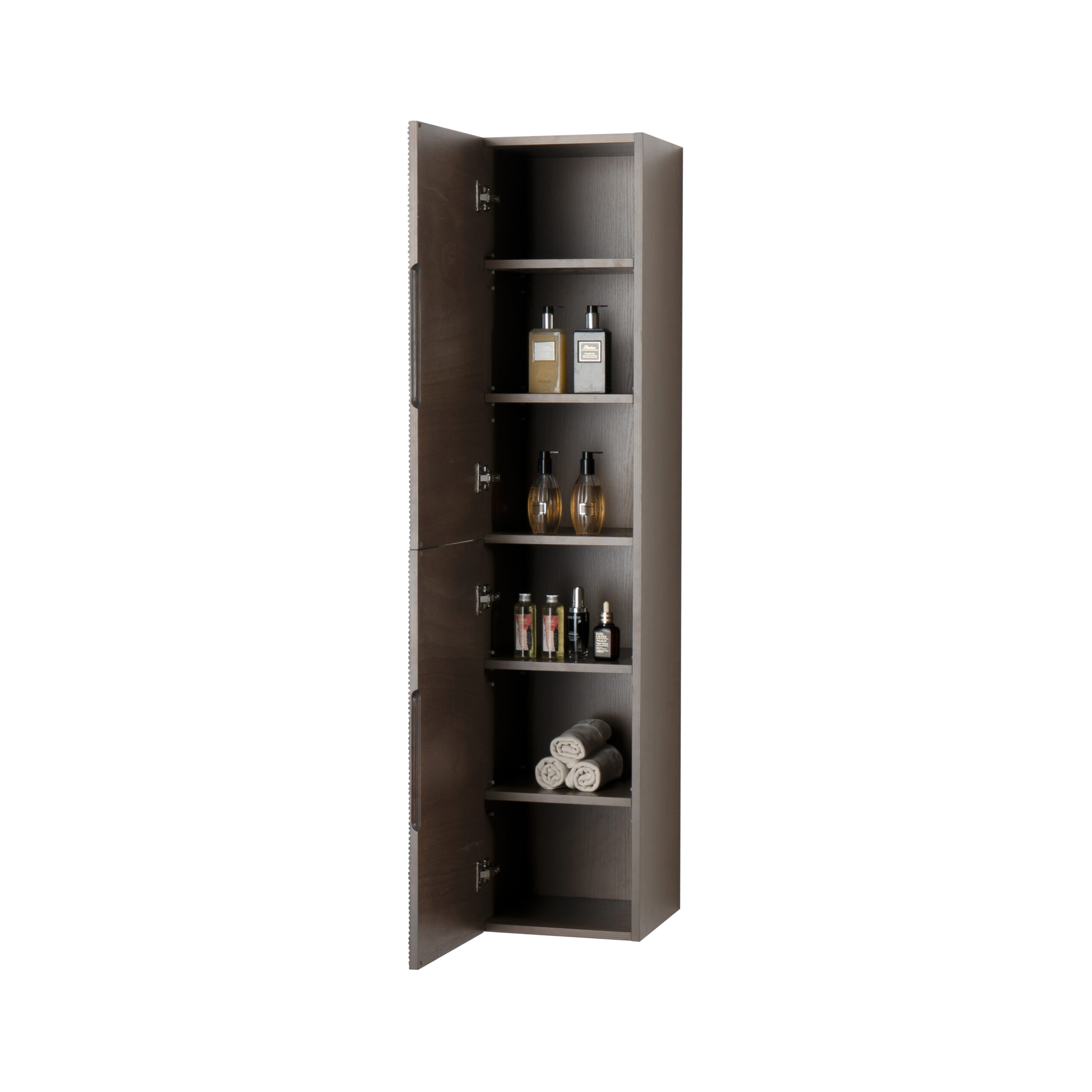 The tall cabinet shares the sleek and stylish design with horizontal lines and the luxurious dark walnut colour, making it a seamless match with the rest of your Layda bathroom set. Made of sturdy plywood with ash veneer, this cabinet also guarantees durability and a beautiful, natural appearance.