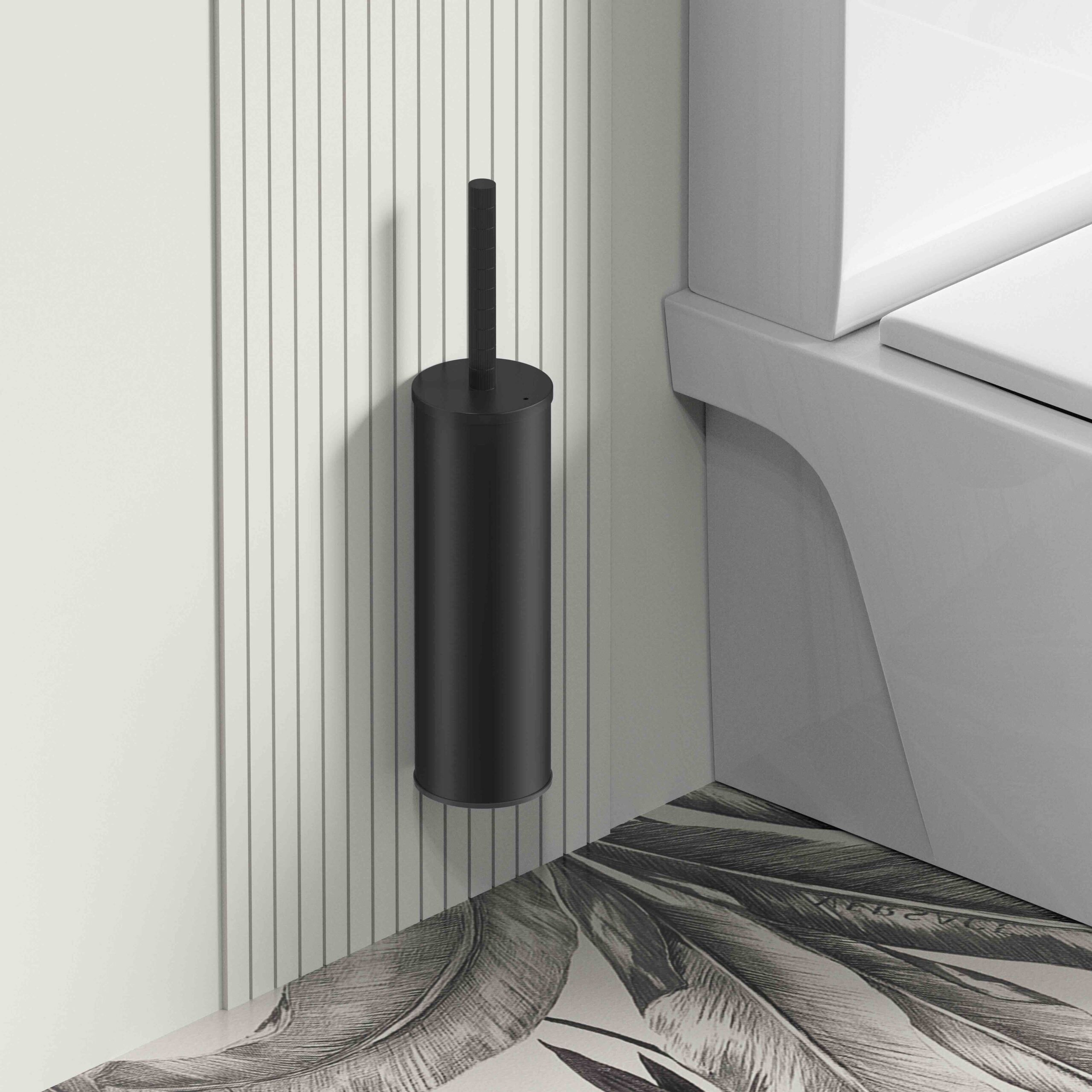 STRIA TOILET BRUSH WITH HOLDER – WALL-MOUNTED OR FREESTANDING – REFINED RIBBED HANDLE – INCLUDES PLASTIC INNER CONTAINER – MATT BLACK (PVD)