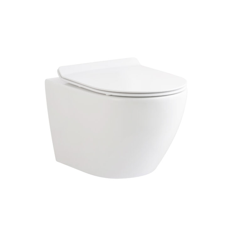 ALONI PRO WALL-HUNG TOILET – RIMLESS – WITH SEAT – DUROPLAST – SOFTCLOSE – QUICK RELEASE – COMPACT 49 CM – 36X25X49 CM – MATT WHITE